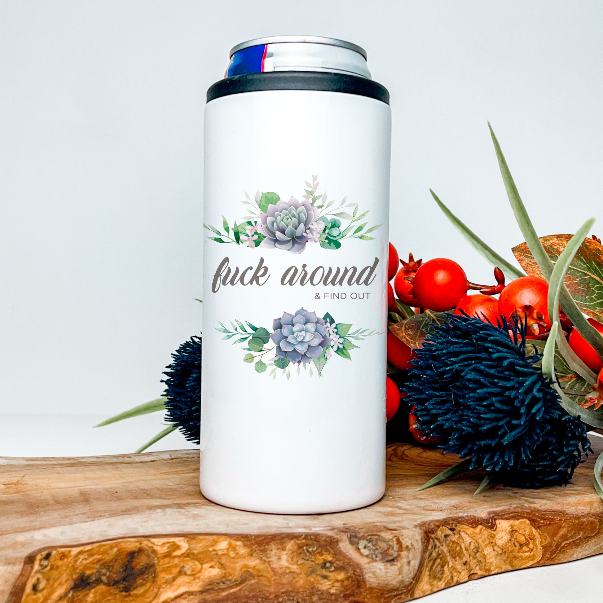 Fuck Around and Find Out 12oz. Skinny Stainless Can Cooler