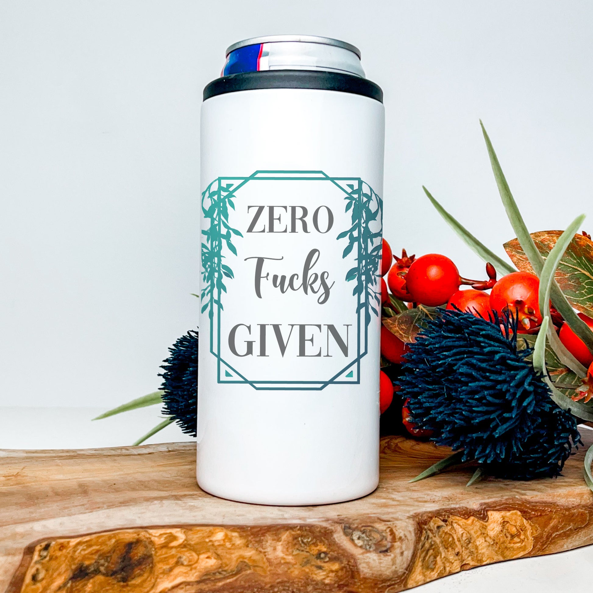 Zero Fucks Given 12oz. Skinny Stainless Can Cooler
